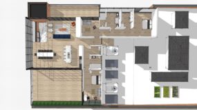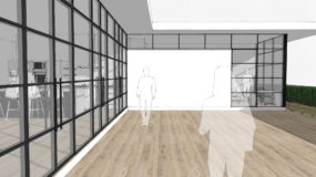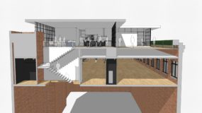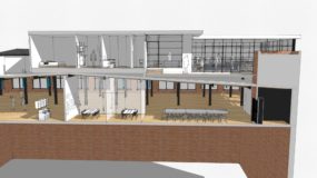 The plan is roughly 2,200 SF of open plan, with a private owner suite and guest room. Working with National Cad and NCS Team in Southfield, Architects, I designed this to be mostly modular, with construction taking place on the guest and owner’s suites off-site.