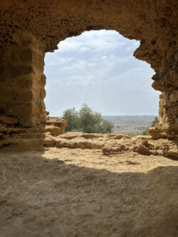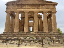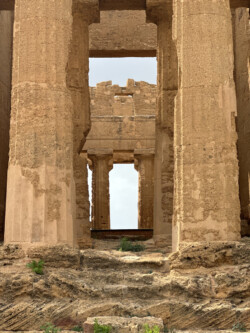 So, it’s not a valley. But you can see valleys from the summit of this amazing ridge where a dozen or so ancient Greek temples are situated along a narrow road with amazing views into history and the sea. This magical space provided breathtaking vistas with ruins in planned sight-lines that can inspire and awe even the most jaded traveler who’s “seen it all!” Agrigento is situated on the south-western coast of Sicily and a 4 hours drive through amazing switchbacks, changing elevation from sea level to 2-3,000 feet in minutes, from our home base of Noto.