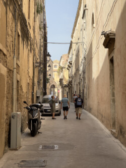 Modica is at the base of the mountain that hosts Ragusa, so it’s a natural pairing. We spent the morning in Modica shopping and ate lunch there. Modica is the cosmopolitan sister to Ragusa. It’s fast-paced but beautiful, with little nooks and alleys that are worthy of a Hollywood movie. Ragusa is perched on a mountaintop with quaint shops and majestic churches. We ate a second lunch near the Duomo Di San Gorgio before heading home through the amazing country farm roads towards Noto.