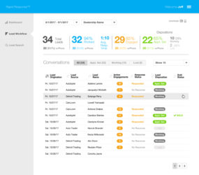 The app had 2 main components: A reporting module for our clients where they could see all of their leads, interact with the conversations, and take next steps, and an agent tool that cued up work, allowed for quick modification to lead information, and provided easy options for the agent to send the customer to the dealership.